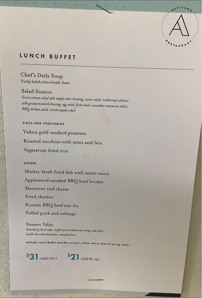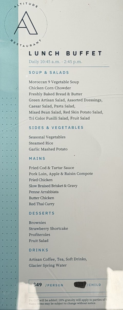 Altitude Restaurant at the Columbia Icefield Glacier Discovery Centre offers a delightful menu that combines gourmet flavors with breathtaking views. Among its standout dishes, the Lobster Ravioli stands out as a rich, indulgent option, perfectly paired with a creamy sauce that enhances the delicate taste of the lobster. For those seeking a lighter yet satisfying choice, the Vegan Mushroom Pasta is a stellar pick, featuring earthy mushrooms and a savory sauce that’s both hearty and plant-based. Complementing these dishes is the simple yet satisfying Bread with Butter, a warm and comforting starter that prepares the palate for the more intricate flavors to come. Whether you're looking for a luxurious seafood experience or a comforting plant-based dish, Altitude Restaurant offers something for every taste, all while delivering an unforgettable dining experience at one of Canada's most stunning locations.